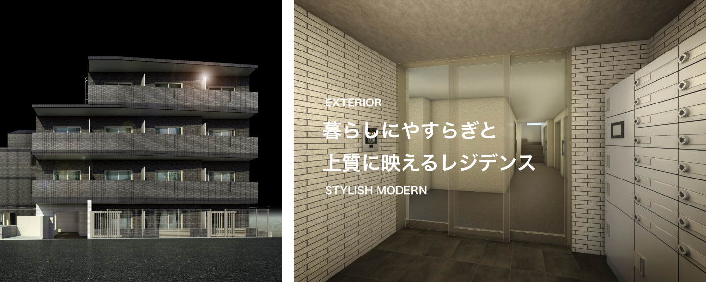 - 閑静な住宅地にふさわしい落ち着いたモノトーンを基調とした
